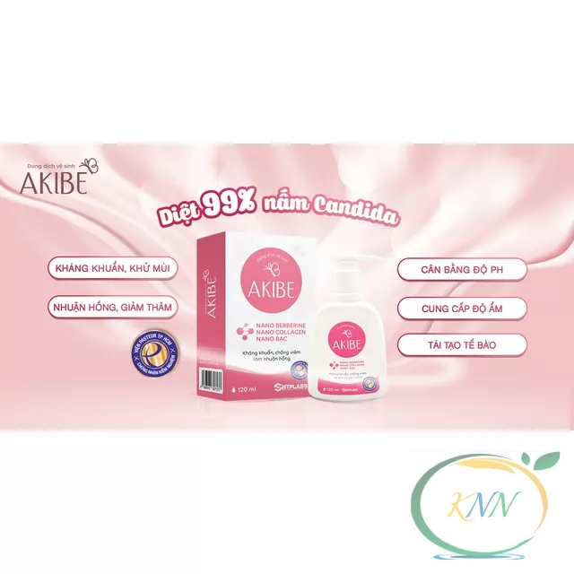 Dung dịch vệ sinh phụ nữ Akibe là sự kết hợp mang tính đổi mới giữa bộ ba hoạt chất Nano Berberine, Nano Bạc, Nano Collagen, được chiết xuất dưới dạng nano rất dễ thẩm thấu cùng với các hoạt chất như: Vitamin E, tinh chất lô hội, trinh nữ hoàng cung,... Mẫu thử nghiệm sản phẩm tại Viện Pateur TP. Hồ Chí Minh cho thấy có khả năng diệt gần 99% nấm Cadina trong vòng 1 phút.
